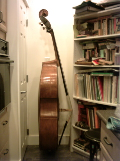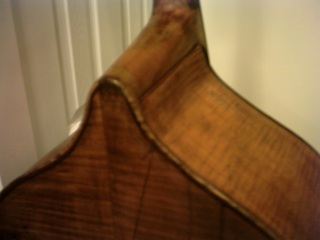 I have this bass out on trial from a reputable shop. The guy I spoke with wasn't sure of the origin. He mentioned French but then said he leaned towards New England because of the way the scroll's carved in towards the center of the spiral. I saw it and immediately thought German. And having tried it out for a week I'd say it plays like a German too. The bass has a nice mature complex sound. A woody pleasant tone with no tub and projects very well in a big hall (although it lacks a little of the sub-bass boom). The shop guy says it's over 100 years old and the look is consistent. It's in very good shape overall having no open seams or cracks, and is set up well. I'm thinking about buying it and would appreciate any ideas so I have an idea of what it might be worth. Thanks! ![]() A couple interesting things about this bass: It has a curiously purfled back button like I've never seen - just an extension of the back and not carved to match the heel of the neck. It also has an interesting cam design allowing the E string to go down to a D by flipping a lever. The other strings are also on cams adjusting for the change in tension and keeping them in tune. Here's a link to more photos: http://s454.photobucket.com/albums/q.../Bass/?start=0 Thanks again! |