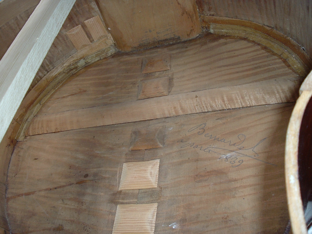 My main axe is an August (Gustave) Bernardel, 1839, original label and papers. Unfortunately, it was damaged by the polar weather conditions we had in NoCal in early January, and is undergoing restoration as I write this. The work is being done by Pat McCarthy in Berkeley, CA.