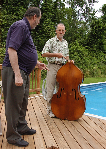 pic2) Arnold and Ken having one last look at the Top and quality of construction out in the sunlight. If we work up a sweat, we can just jump in the pool and cool off...lol pic3) SCREW THIS! Cool this hot piece of crap off instead... SPLASHHHHH.. This German factory Plywood Bass was late to its own Funeral so we gave it a Burial at Sea instead.. Bon Voyage.... pic4) Arnold having second thoughts.. "Hey, I could have made a CD case out of that".. As Arnold ponders over his options.. His mind never sleeps...As Ken drives away laughing while Arnold's Dreams have been crushed... Name each pic. The winner of each caption gets a free repair evaluation by 'Schnitzer, Smith and Wesson'..! ![]() "Life rafts required for all visits." |