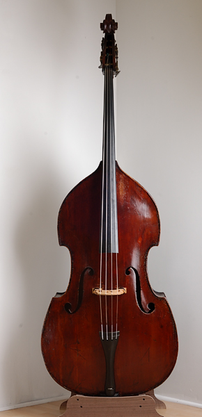 Here we have a beautiful old turn of the century French bass from the shop of Paul Mangenot, pupil and successor to Justin Derazey. Although unlabelled, I have seen at least two others labelled and a few that were not. All of them have the same distinct look from the model, wood and varnish. This bass is in fine restored condition and has a modern set-up with new fingerboard, bridge, sound-post and end-pin unit. The Top is Spruce. The Back, Ribs and Neck/Scroll are Beech-wood, all original including the Gears and Varnish.