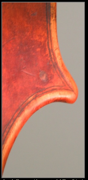 Here is something odd to me. Look at the contrast in work on the same bass. The corner work is first class showing a superb bee-sting, yet the f-fluting looks as if the maker didn't know how to sharpen a gouge or plane.
