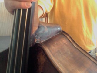 Eastern European, seller says circ. 1890's. Neck trauma. Owner said the luthier that restored the instrument in the 80's estimated it happened early in the bass' life (20's). Originally nailed together with home-made nails, restored in the 80's. Looks and feels solid... Here's a couple of shots I took of the neck through the f-holes, followed by others of the neck, lower bouts, etc. Any knowledgeable advice appreciated! Last edited by Kyle Jones; 06-06-2009 at 04:27 PM. Reason: typo |