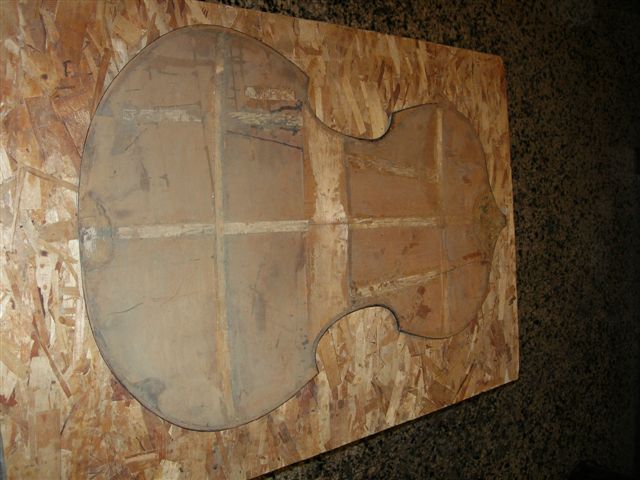 I removed the plywood and the resin, made the repair of the ribs, which were heavily demaged with woodworms, changing two sectors of them near the lower block (too many woodworm tunnels) and the upper block, g side ( there was a plywood patch outside).