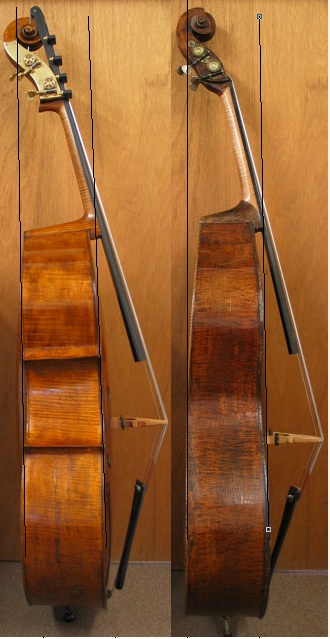 I captured these basses earlier and put a straight line from the back up to the scroll to illustrate the angle differences, then I added the front line to create a "box" where the nut sits inside.