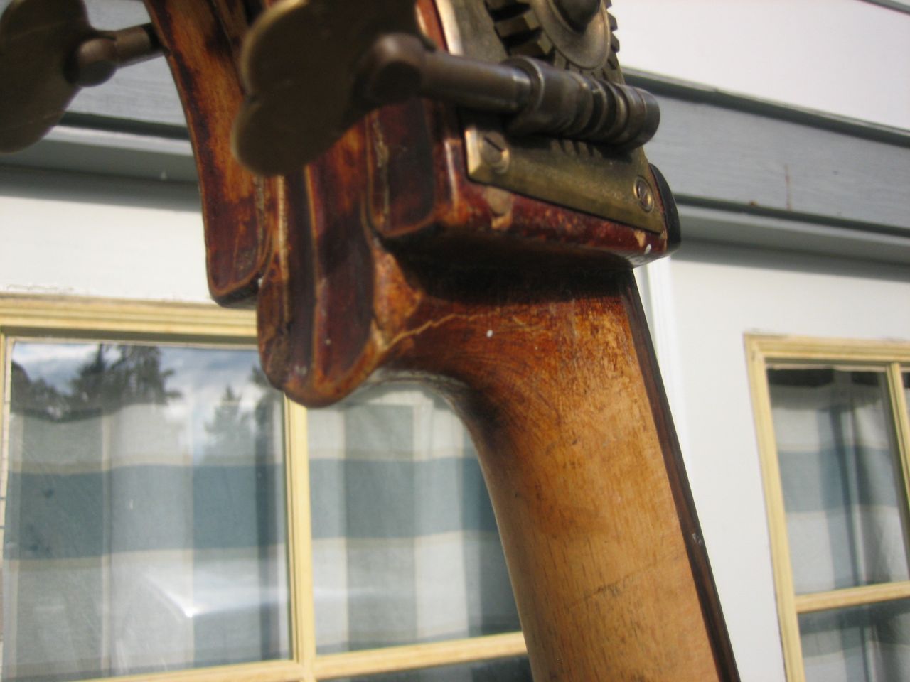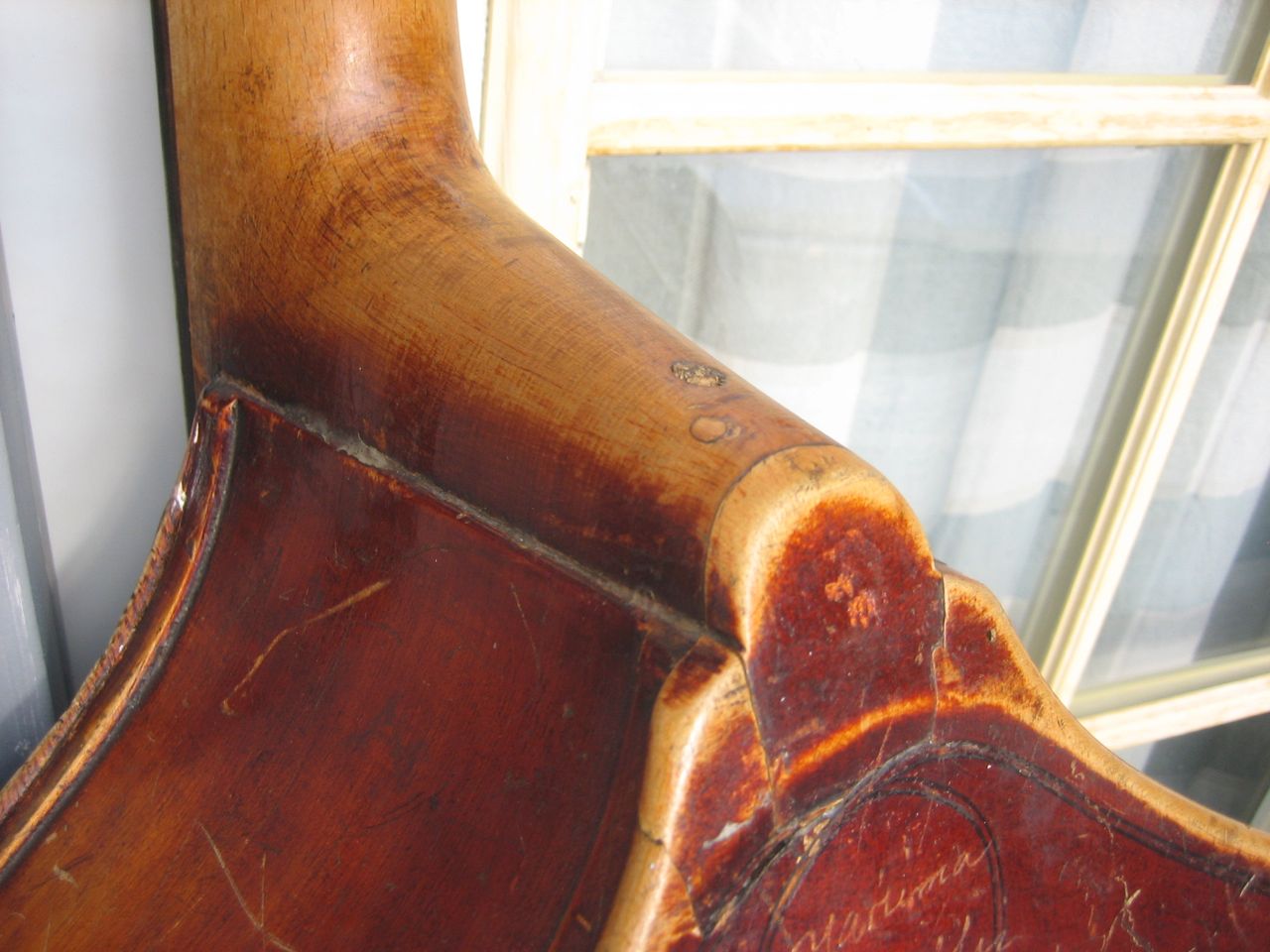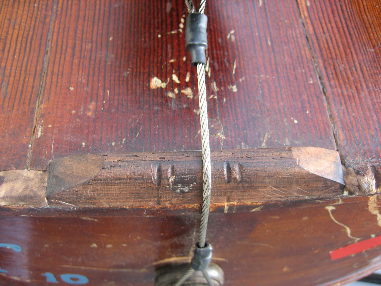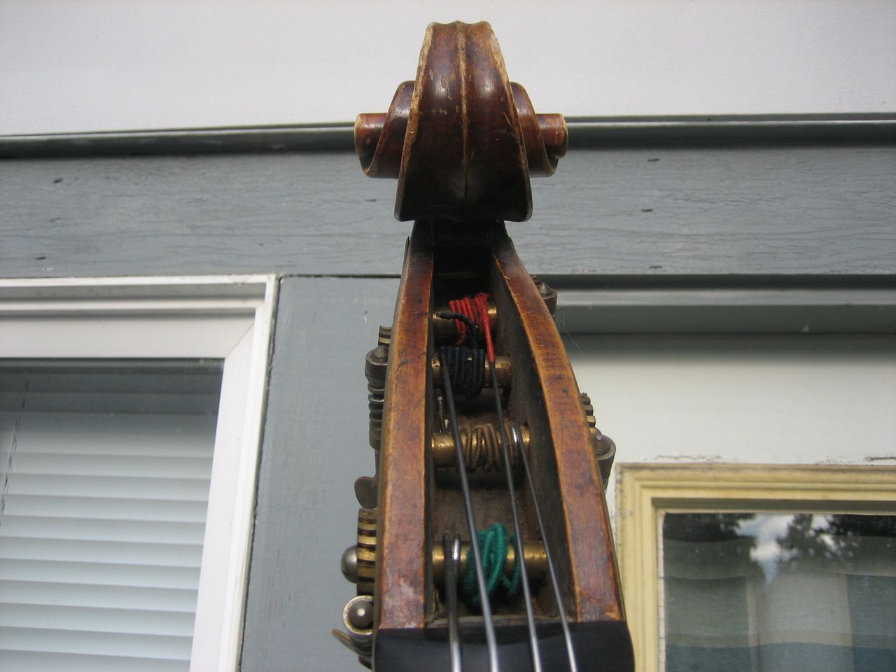 The scroll is kind of a jigsaw puzzle, but put back together. My local luthier who looked at the bass with me says the scroll makes her a bit nervous, but it looks OK to me...