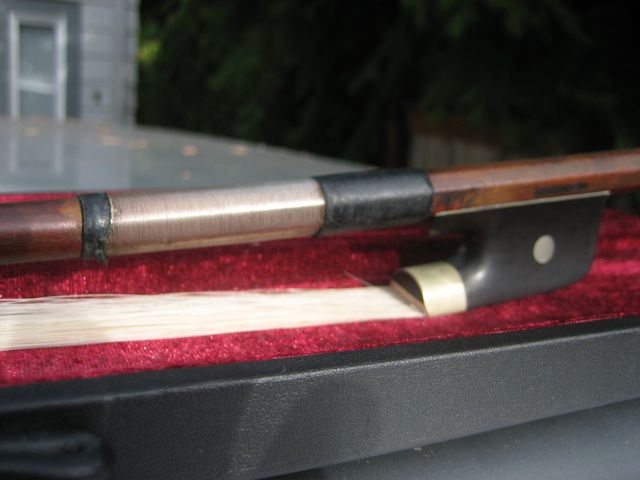 Seems like a very nice stick, beautiful wood. Needs a rehair. The wrap on one side of the wire winding (sorry for incorrect nomenclature) is a bit frayed too (see pics).