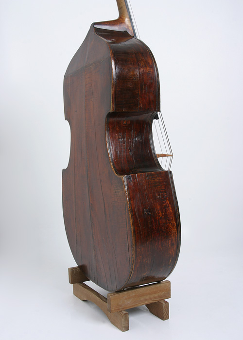 This one with narrower Ribs and Violin Corners c.1780. It also has an angled Back break up near the Neck. This Bass with a few exceptions looked so Italian I had to take a 2nd and 3rd closer look at the Head and Wood under the varnish to believe it was olde English. I got permission from the owner to showcase it on my Website for display only. In case your are wondering, it is Not for Sale. The Bass is owned by a NY area professional freelance Bassist. |