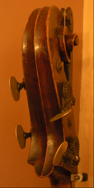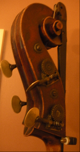 Then I looked at Eugene Wrights bass that looks all original and came to the conclusion that his upper bouts were very similar to my 'cut' upper bouts. Prescott must have changed the 4/4 model Busetto and Gamba basses to have smaller upper's for the players buying them. That I think is 'American' and not German as it was done to make it playable and not a copy. The only Copy part is copying his own cutting down which we can consider a learning curve. Show me a single Prescott that looks like the proportions of my German bass (I think it's German) and I will reverse my opinion. It is also written somewhere that Prescott copied an old English Viol for his Scroll idea and length. That is a huge pegbox for what only had 3 strings originally! More please... ![]() |