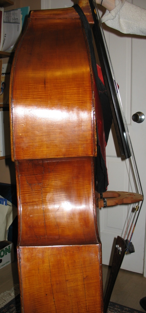 I picked up my old Mittenwalder about a month ago from Jeff Bollbach with its new chromatic C-Extension. He also tightened up a few other things around the bass and the sound is quite impressive. The E string shakes the floor and it's not a huge bass, just a large 3/4 or small 7/8. I think the Birdseye maple back and ribs has something to do with the low end being so deep and powerful.