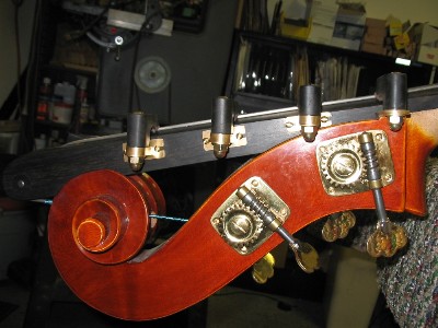 ![]() ![]() I have to count carefully how many Chromatic C-Extensions Arnold has made for me. Jeff made 2 so far and will make a 3rd for the Mougenot when it's fully restored... Ok, counted them.. Arnold has made 6 of them so far including my Panormo school Bass which was just re-photographed to show the extension. I will post that one as soon as Mike loads in the new pics. Of the 6 from Arnold, 3 of them, the latest made have the adjustable brackets. All of Jeff's do as well. The Hart bass actually has Jeff's brackets but the extension and fingers by Arnold. |