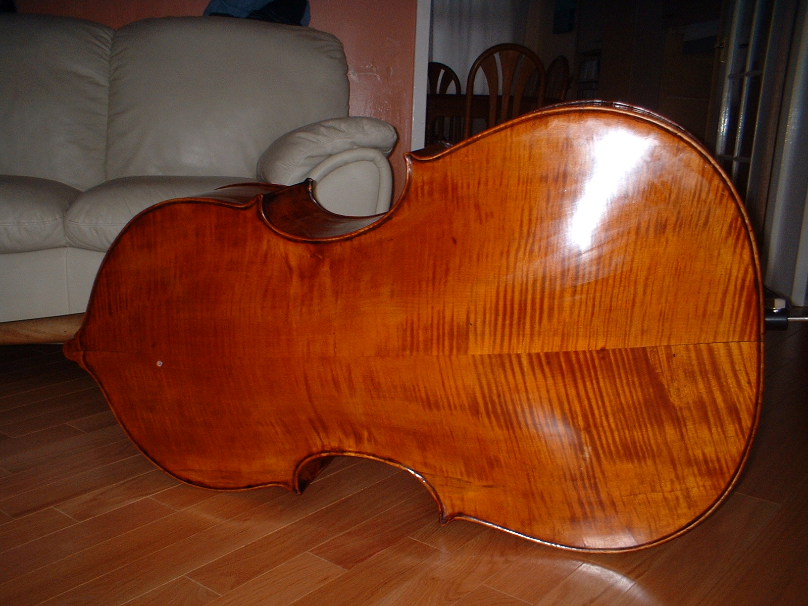 The bass was bought from the violin shop in Glasgow a couple of years ago. The dealer said it had probably been refinished. The bass has solid top and back and probably sides. There is a significant amount of shrinkage that has caused the sides (at the bottom of the bass) to be level with the edge of the back. I dont have a decent photo at the moment but you can just make it out on the one that I have attached. Would this happen if the bass was modern? Cheers Dave |