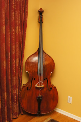 I'm working on a project to restore my teacher's fully carved Mittenwald shop bass. As we go forward, I would love to know if people have any insight about this particular instrument based on these photos. We're going to have a very large top crack repaired and do some other restoration (you can see the crack pretty clearly--it's on the treble side of the upper bout). Believe it or not, Nick is currently gigging on the bass and it sounds pretty good. I think it will be a much nicer bass once we complete the repairs.