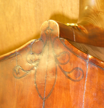 Recently, I sent a link of this webpage to a top Italian Master in Italy who had done a story on Bartolomeo Cristofori who was the keeper of instruments in the court of Prince Ferdinand de Medici of Florence along with his too apprentices. One was a Harpsichord maker and the other a Luthier, Pietro Antonio Malvolti who took over Cristofori's role after his death in 1732. In answer to my question of this well preserved Bass being the actual work of Malvolti he replied "Complimenti per il suo strumento certamente toscano e possibile Malvolti. Molto bello, cordialmente (and his name). Roughly translated, Compliments on the instrument is certainly Tuscany (Florence is the capitol) and possibly Malvolti. Cordially (and signed).