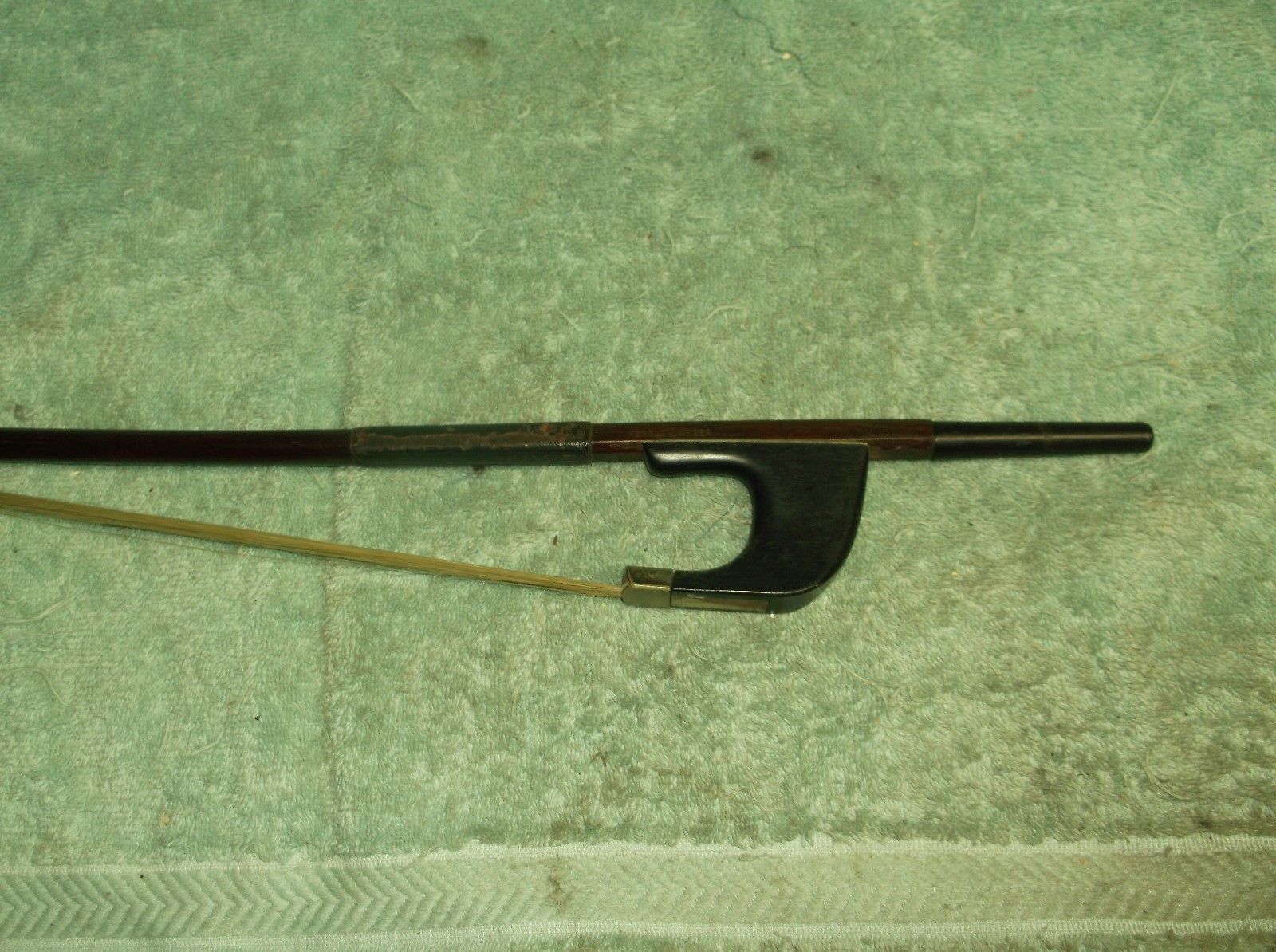 I was wondering if you had any info on Herold Jaeger bows... I recently purchased one for a meager sum, and wanted to know what you think? The frog and tip look suspiciously similar to an HR Pfretzchner I had once. While I know that the bow was imported I wanted to know what you think? Could this be a relabled Pfretzchner or maybe some kind of german shop bow? Is it even Pernambuco (looks so to me but Im no bow expert). Has anyone ever seen one before? What would it be worth? The part where the hair comes out has oodles of gunk, but appears to be silver (it isn't green like nickel) and the slide is a really pretty abalone. What makes me think pernambuco is that in the stick there is this red undertone to it, and the small parts where the finish has chipped looks to be red... Lastly the tip looks to be either bone or ivory, I can't really tell but it is really nicely shaped... Did I make a big score or strike out haha! Winning bid was $45.99 ![]() ![]() -N |