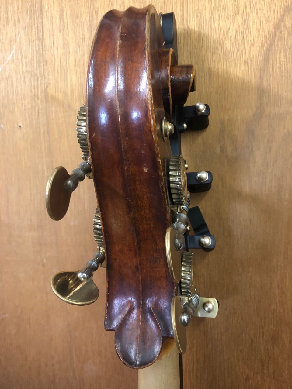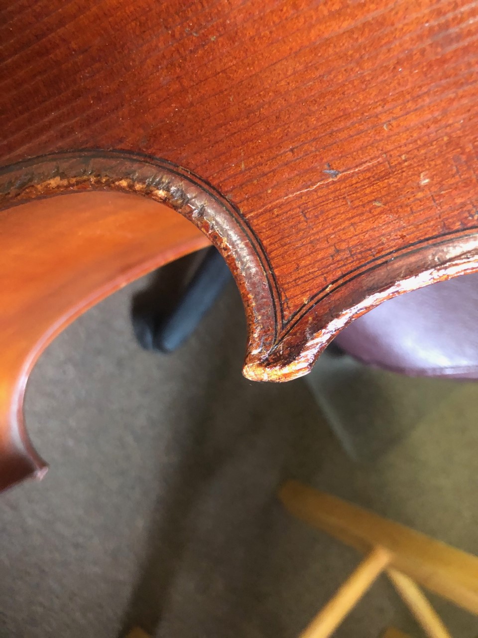 Body shots, f-holes, purfling and pegbox/button..