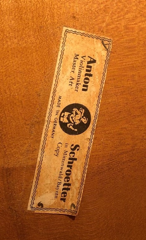 This Bass, although labelled Anton Schroetter is actually a brand made by Hofner and both companies have the exact same address. Other than the label, it's the same exact instrument and model I have seen labeled as Hofner. I had this exact bass in a 4/4 model 5-string just a few years ago made in 1977. This bass was purchased around 1959-1960 by a high-school student in his teens and kept the bass in this immaculate condition for nearly 60 years. I think this bass dates from about the late 1950s and was sold as a new instrument then. I can't recall seeing another bass in this condition that is 60 years old. Everything on this bass, EVERYTHING is original. The strings are the original/original orchestra Flexocors with the wire wrappings around the silk ends in the Pegbox that are from that era as well but the bass may have come originally with Guts.