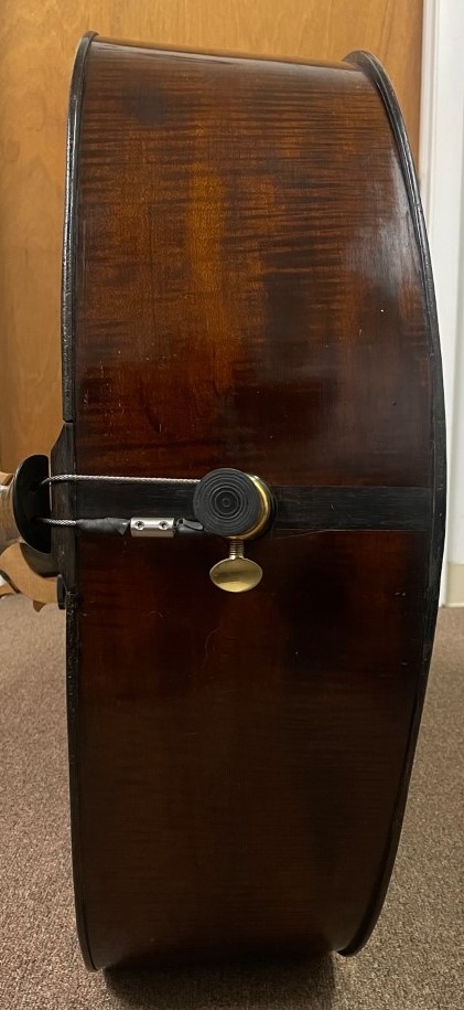 Pictured here is the 1st Bass we commissioned from the pattern of the Marconcini School Bass we have. The sound of this modified copy was better than we had expected but still, we have re-worked this bass internally to meet our standards. Pre-restoration pics and specs here of this Marconcini model-copy; http://www.kensmithbasses.com/double...del/index.html String Length; 41 1/2" (105.4cm) Top/Back Length; 43 5/8" top/back, 44 3/4" to back button Upper Bout; 18 3/4" Middle Bout; 13 1/2" Lower Bout; 25 1/2" Ribs; 7 5/8" at the Block, quickly tapering to 6" at Neck |