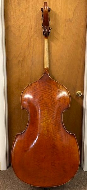 Measurements: String Length: 40 3/4" Top/Back Length: 43 1/2" Upper Bout: 19 1/2" Middle Bout: 13 3/4" Lower Bout: 25 3/4" Ribs: 7 7/16" (8 1/2" w/T&B), 6 1/4" at Neck (7" w/T&B). Top: Spruce with even grain. Back and Ribs: highly flamed Maple Neck/Scroll: plain grain Maple Varnish: beautiful light red over gold with some slight crackle patina. |
