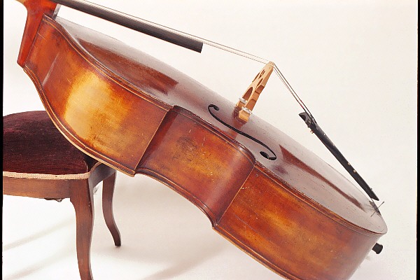 * Gamba form with curved back. Top is of wide-grained spruce; back is of two piece maple slightly figured with matching ribs. Plain maple neck. All ebony trimmings (fingerboard, nut, etc.; includes new tailpiece). Pfretzschner workshop teardrop-shaped purfling loop below the button on back
