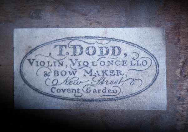 Dodd by the way is a very Famous name and copying his label is not that hard to do as they have been pictured in books. A new trend has been happening with labels from lesser know makers than Strad or Guarnieriin hopes they might 'pass muster'. Actually, they usually don't at first and eventually never do.