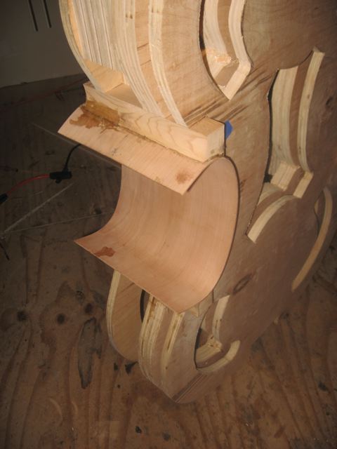 Here is the neck and the half carved scroll, the volutes still need to be carved in.