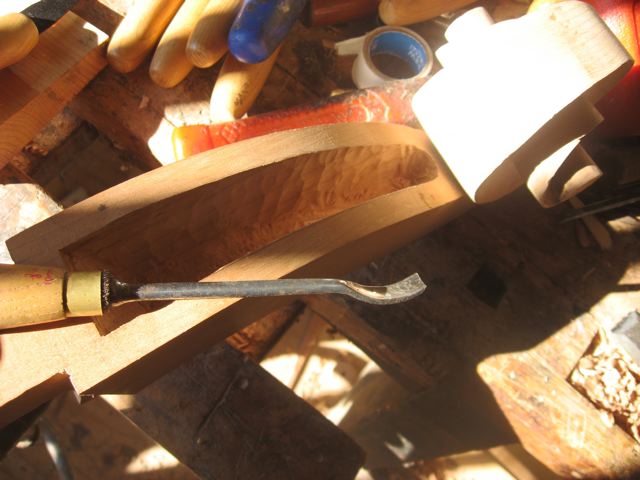 2/08 - Carving the back profile from a Cherry blank.