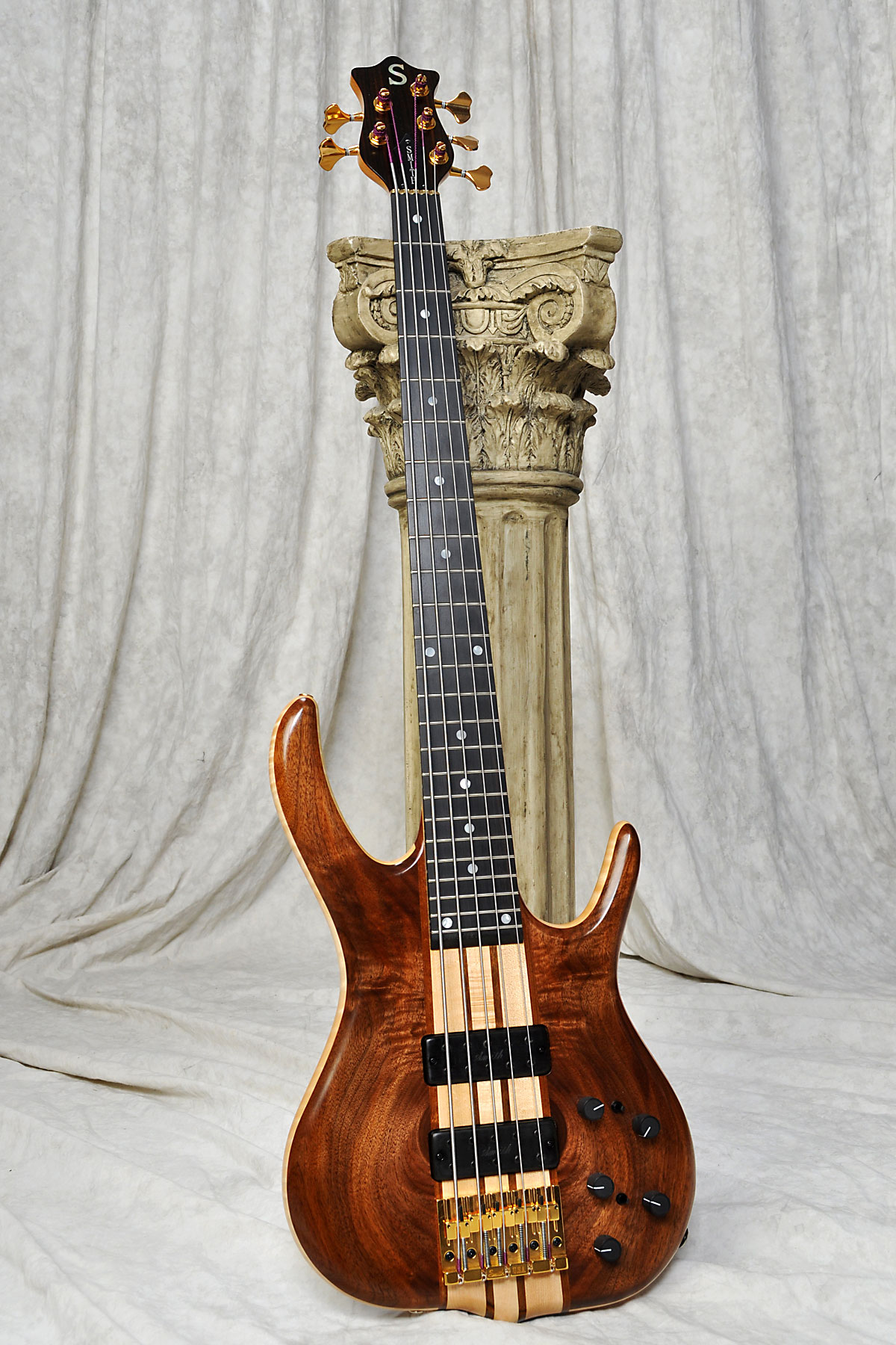 Birdseye Redwood is a very rare wood and Ken only made a few basses with it. In fact, I had never seen this wood used until Ken introduced it with his 20th. Anniversary Models. The KSA6 I had posted is 1 of 3 made. I believe the origin of this wood was California. I'm not aware of an "Exhibition" or 5A grade of Bubinga. While Bubinga can have a nice figure (some nicer than others), it is a heavier but also great sounding tone-wood.