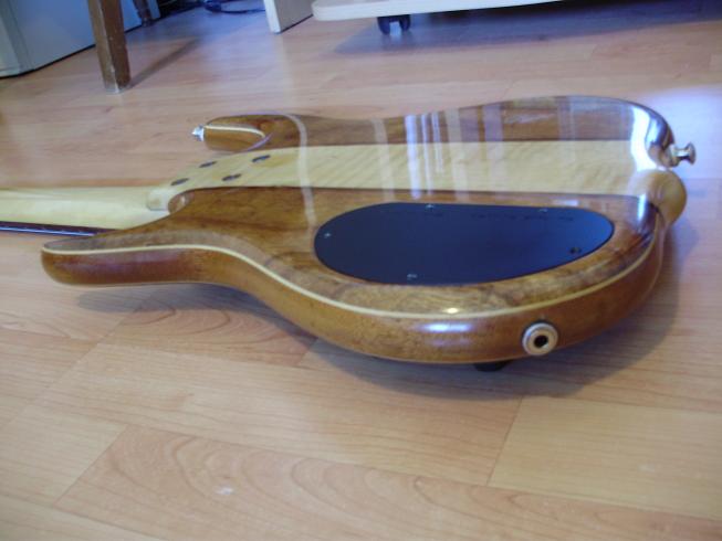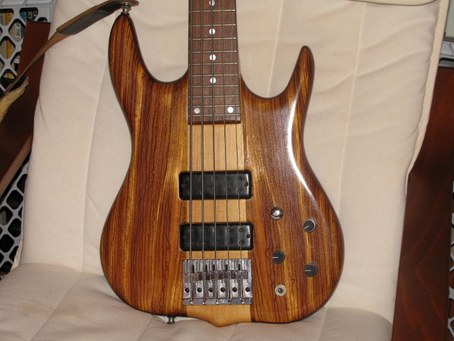 The '97' in the end is the year made. There should be a completion date on the label inside the back plate. We made several body wing sets back then used on Bolt-on's and Neck thrus in 4, 5 and 6 string model basses. The theme was basically 'The African model' using all african woods for the Top, back, core and most of the feature woods bordering the wings and center, mainly in contrasting colors using Bubinga, Shedua and Zebrawood. That's what comes to mind. I have bought a small load of African Mahogany to try out as an alternative to the traditional tropical mahogany. The load yielded about 40-50 core sets so I just made these up with African Top woods and dubbed it 'African model' body wings. |