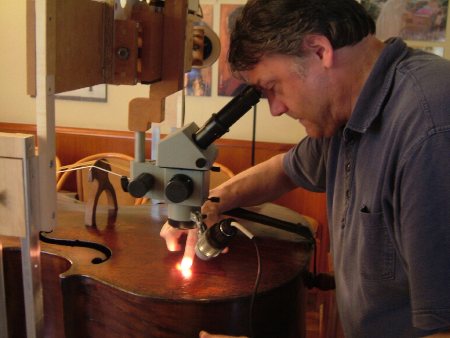 Duane thinks this Bass of mine might very well be Spanish as the Scroll fits that Profile being only influenced by Italy but more of a Spanish flair than Italian as far as the Pegbox goes. He pointed out that the Brescian Scrolls have points on the Cheeks like the d'Salos do. I had also heard that Tom Martin looking at pics sometime ago also mentioned it looked Spanish. The Top is made from extremely fine grained Violin grade Spruce or Fir but the detail work throughout is that of a very fine maker considered to be above the average Italian that made Cornerless Basses and easily over the Spanish we have seen. Perhaps some Spaniard that trained in Italy or an Italian the moved to Spain who had exceptional skills made this fine Bass with a sound to rival most great Basses as well as its own beauty. On the Brescian thing Duane reminded me that he is one of the organizers of the upcoming Brescian Expo in Italy starting in June this year for a month. Also, it will be a once in a lifetime viewing of several d'Salo and Maggini Basses that will may never may again in the same room. I did see a link but can't find it now. At this time, I don't know if I can get away to go. |