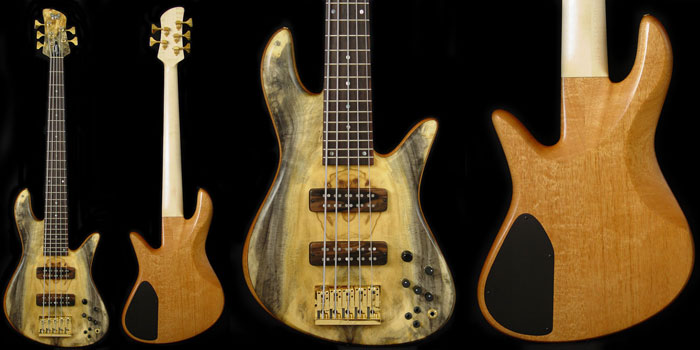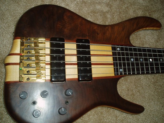 3. 6EG - Fretless - 7pc. Body: Quilted Maple F&B, Mahogany Core, Walnut and Flame Maple Lams.