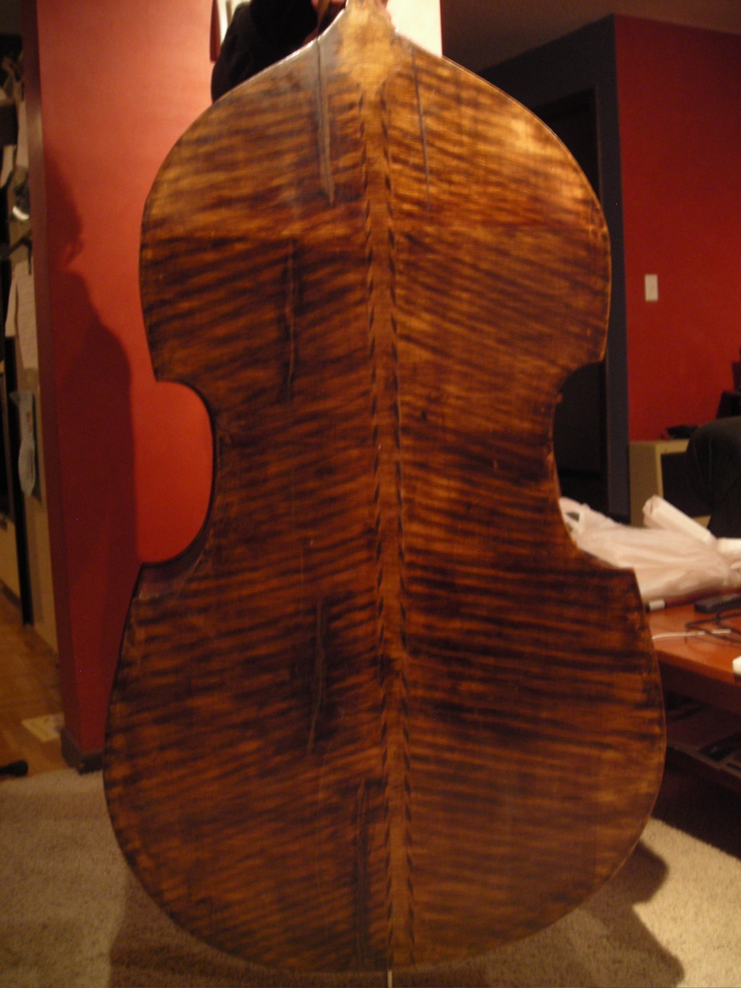 Not sure why you haven't got a single response yet on this. At $2500 this bass is an excellent deal. The back is very interesting. I don't ever remember seeing anything like it. There is a Tirol vibe about it but who knows? Either way, it's a great deal.