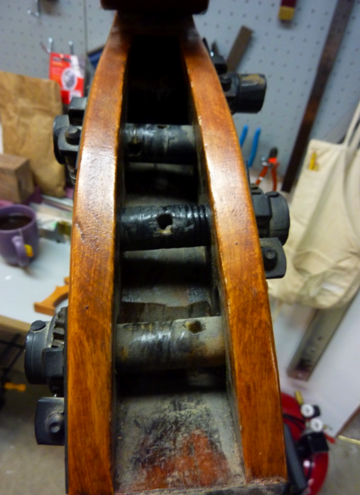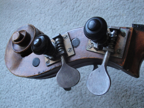 i know, keep it to the basses...i get it. however, i've recently come across this cello with bass tuners on it and i've never seen anything like it before. basically i'm hoping that somebody here could help me put a date on this instrument. it is a fully carved cello, with lots of repairs. it has an ebonized maple fingerboard. no date/label that i can see. PLEASE HELP!