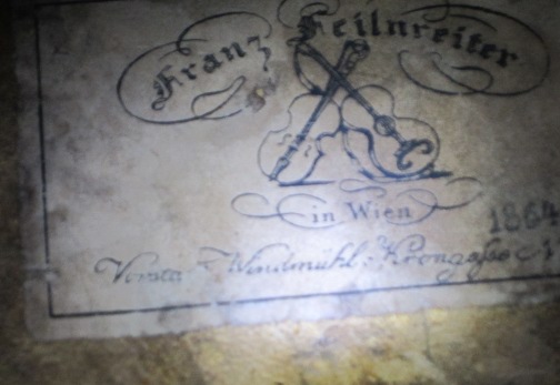 I know the prevailing concensus among the knowledgable is that my new old bass is a 20th century German shop bass and I'm fine with it, but the label does make for a minor mystery. The label seems to be authentic to the maker Franz Feilnreiter as well as the F.F. brand in the bass according to