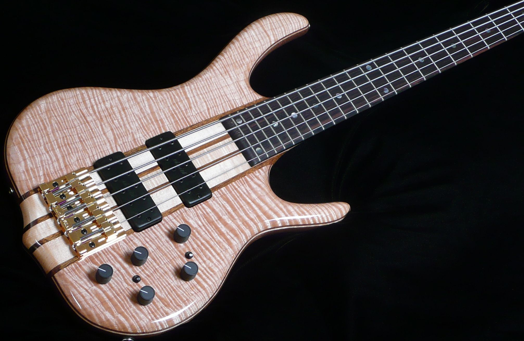 That's just about my favorite wood. The Tiger Maple on your bass was aged here about 12 -14 years as was the Walnut core and laminates.