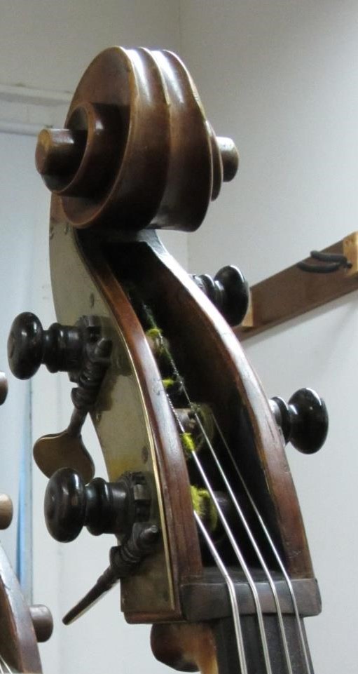 Having just come in from Europe, to ensure a healthy life here in USA we have decided to open up the bass and clean up some old repairs, hence a restoration. The 'Dolling' will also get a KS/USA style set-up like all the other double basses in the racks in our showroom.