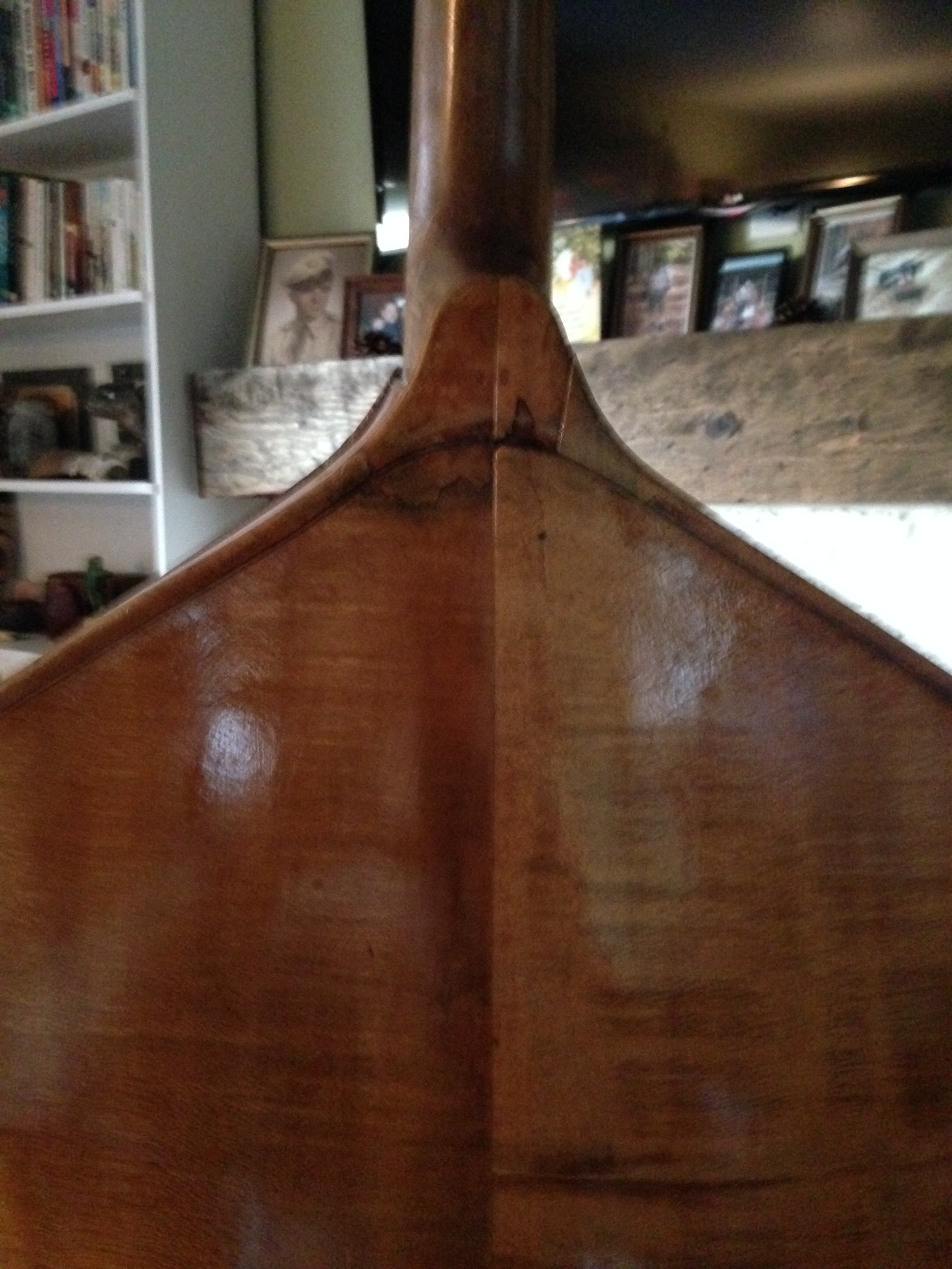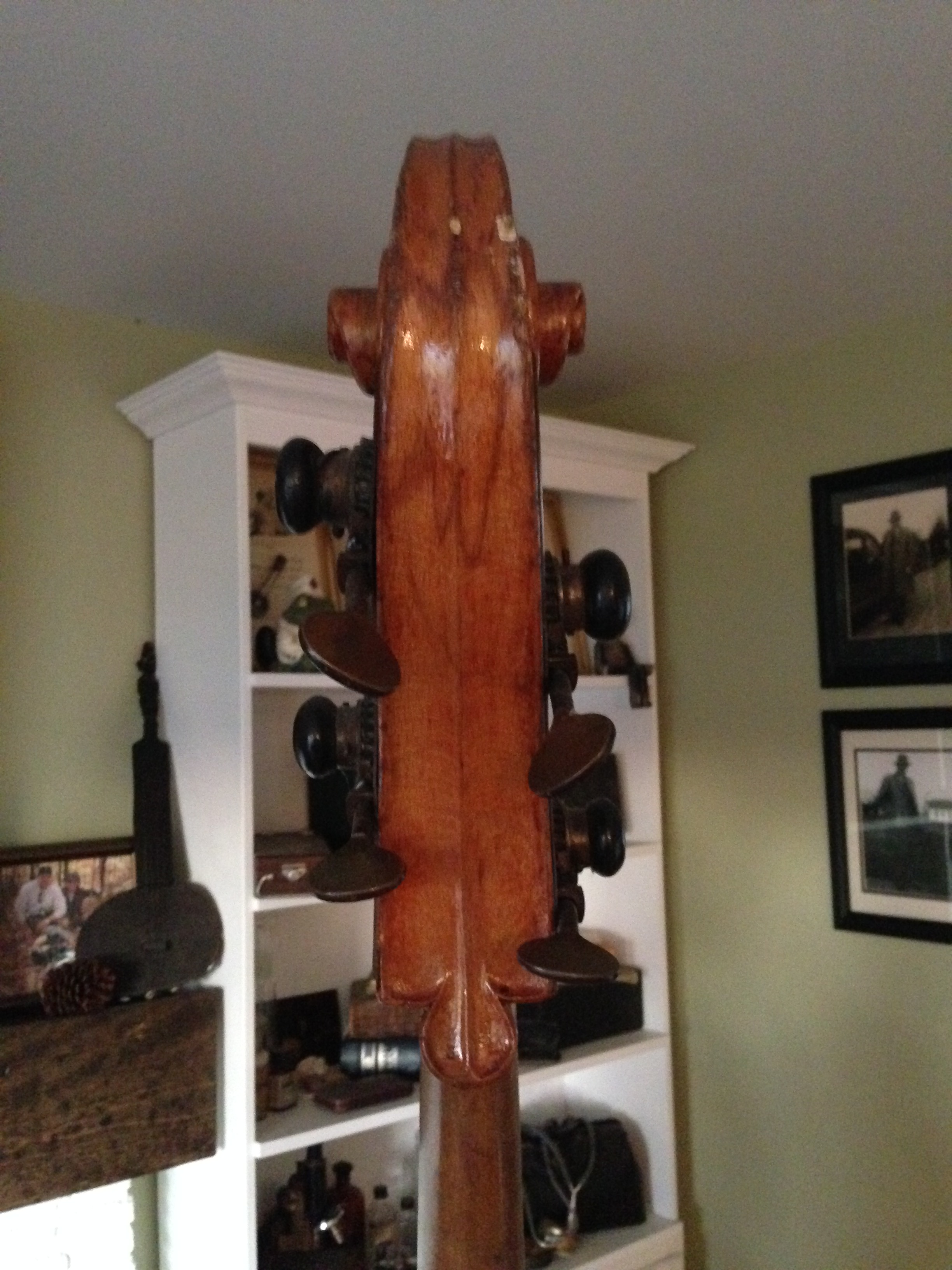I recently purchased this instrument on a prospective guitar buying wild goose chase. I know next to nothing about unfretted string identification or value and hope to become better informed by the obvious expertise inherent to this forum. What I think I know: -Recently purchased from a couple in their late eighties in central Indiana. It had belonged to a long deceased brother; the couple know nothing about the bass. -Was repaired by T.G. White in 1969. The only other marking inside the instrument is a sticker from the Fuller Violin Shop, Fort Wayne Indiana, possibly where Mr. White worked. Both Mr. White and Fuller Violins are apparently long gone... -Carved, most likely German or Bohemian late 19th/early 20th century. -Plays and sounds very good in my limited opinion. String length: 41.75 Top length: 43 Back length: 42 Upper bout: 21 Lower bout: 25 Rib: 7.75 At neck: 6.125 Again, sincere thanks, John Wheat, M.D. Last edited by John Wheat; 11-05-2014 at 09:46 PM. |