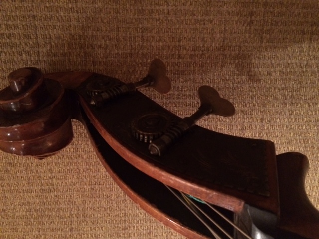 Your bass is maybe from the Wilfer Shop, Lang shop or even Hofner shop if they made them as an OEM business to other makers. I have here in my shop an OLD plywood bass that has some faux flame showing under the throat of the neck, all else worn away and looks 100% the same as a post war Hofner neck I had here not long ago. This is a Schoenbach bass and I would bet by Hofner or Lang, c.1920s-30s. The Blume in the back is like a Juzek bass and I have seen that on old Lang basses. The Wilfer name is thrown out way too much on these Juzeks. They made from what I know the higher end models like the Master Arts models, maybe the lower figured Violin model and the Lang supplied the lower end models like (my guess) Gambas, maybe Violin models and the Plywoods. This info is directly from Juzek, told to me in 1980 at Frankfurt where Bobby J. also walked me over and introduced me to someone at the Wilfer booth, a current maker. I don't recall his actual name.