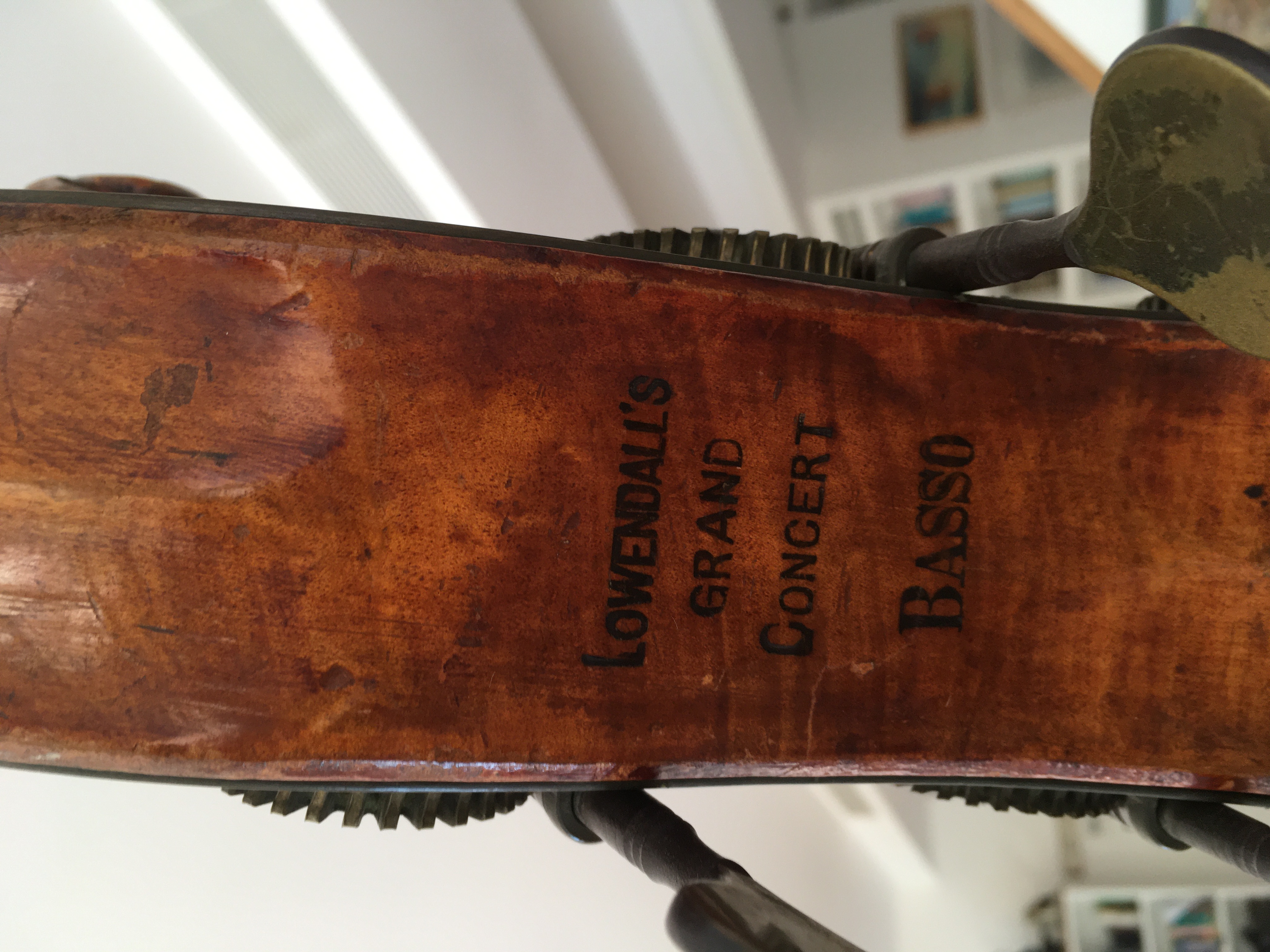 Here's another Lowendall for sale, from the maker's Dresden years. Unlike yours, it has cello-like shoulders, which have been mentioned (as impediments to easy playing) in earlier posts.