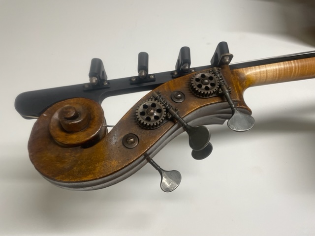 So, here we have the re-born, saved from the dead, a beautiful bass by August Germunder Snr. ready to serve in the ranks of any orchestra. The sound is sweet and thunderous..