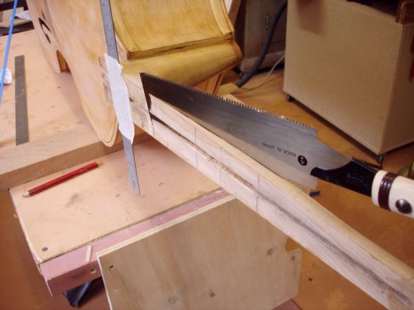 Any luthiers able to give me any hints on how to cut that long splice? I'm thinking a backless japanese katana saw perhaps ... and a hacksaw to get through the graphite part ... ugh.