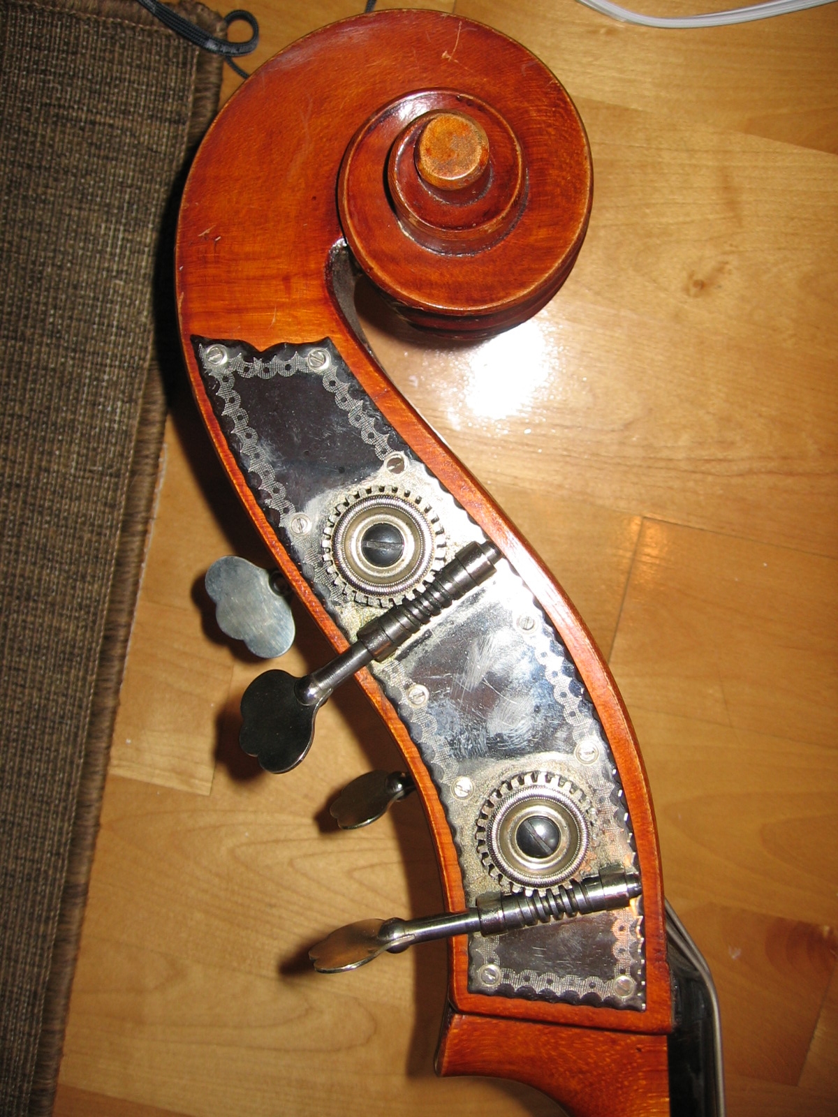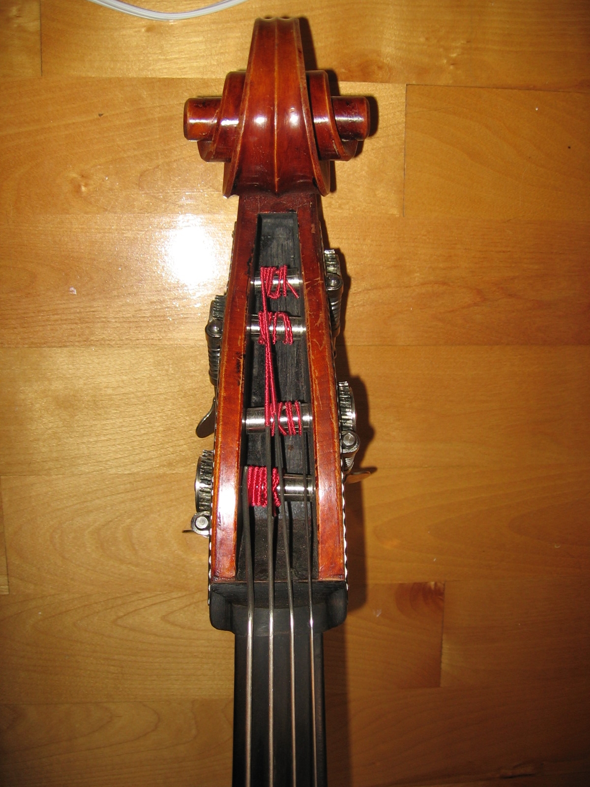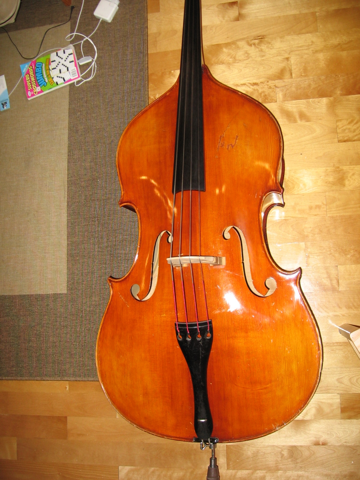 If you came to me to sell or trade that Bass in, I would accept it as a German Shop Bass with high flame mid 20th century(1955 as you say). It would not matter much where it was made within Germany as much as the condition and sound. The price/value would not differ much from Wilfer, Juzek or even Pollmann as much as what sound the Bass puts out as well as its past or future repairs done or needed (aka condition). German Shop Basses today sell for a variety of prices and I don't see any pattern to go by. Some Basses seem over priced and others seem way under priced. These Basses may have sold from $100 - $900 in the 1950s thru 1970s so seeing them sell for 10-20x that price is difficult to swallow. I sold a Gustave Bernardel in the 70s for just under 4k and a Barbe for about 4k. With this kind of math then could the same people ask 40-80k for a 19th century French Bass? Well, there might be a few that would command that price but it would not be the norm. With that in mind, why should plain Jane Factory German Basses sell for the prices they are asking these days? I have seen 3 nice older German Basses sell from about 20-25k recently. One was a big 7/8 about 90-100 years old, fully restored and could pass for an Italian Orch Bass. Another was a beautiful handmade German Orchestra Bass about 100 years or so and would also fit any orch. The third was a 200 year old Bass with many many repairs but in good health and sounded its age. I have not seen many Wilfers or Juzeks that could hang with the tone of those Basses. |