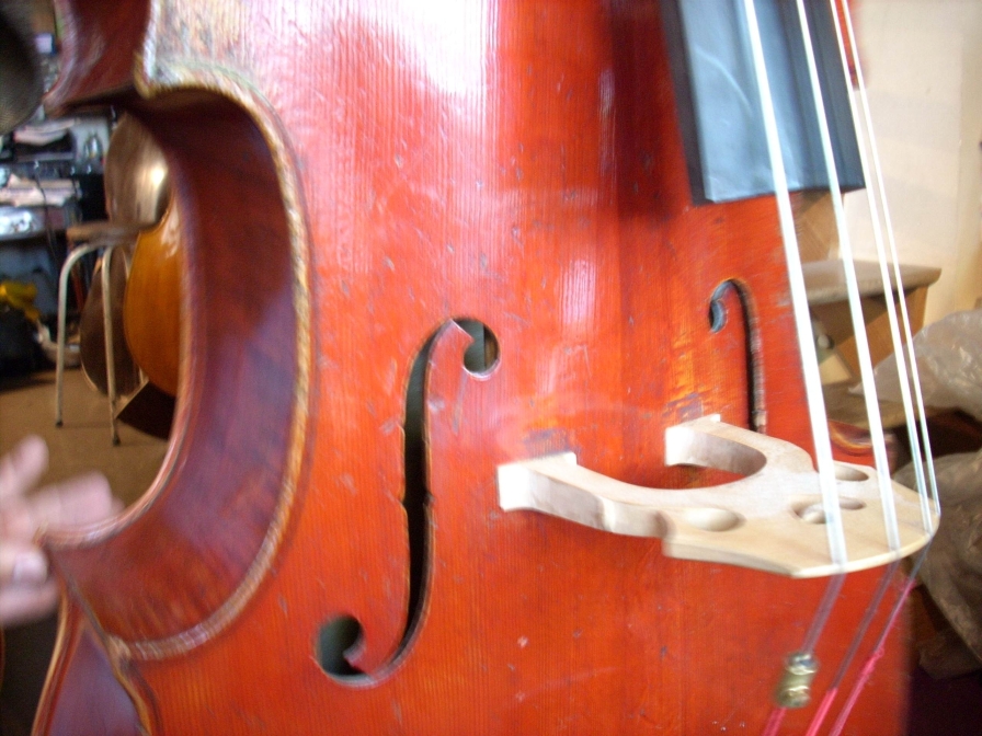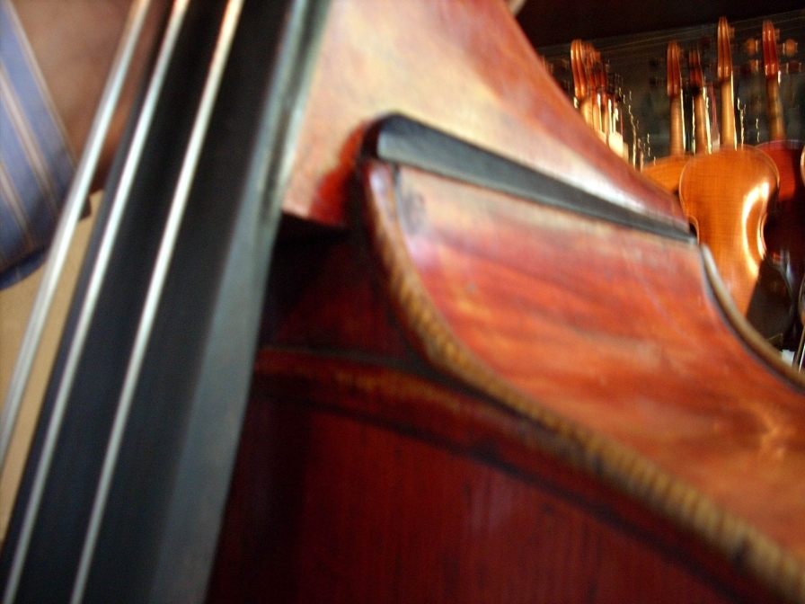 iirc the bass had on original string lenth of 98cm (38,5") the luthier changed the neck, now it has 108cm (42,5") i will not comment this, if you have your own opinion what a well proportioned bass is, well... ![]() the sound was a little to harsh and bright for my taste. i´m not sure if its a real vuillaume. although the st. ceciles were a kind of economyclass-instruments, this one seems to be too less accurate made, imho. i am courious what ken (and arnold?) will say. Last edited by Anselm Hauke; 01-29-2008 at 03:13 PM. |